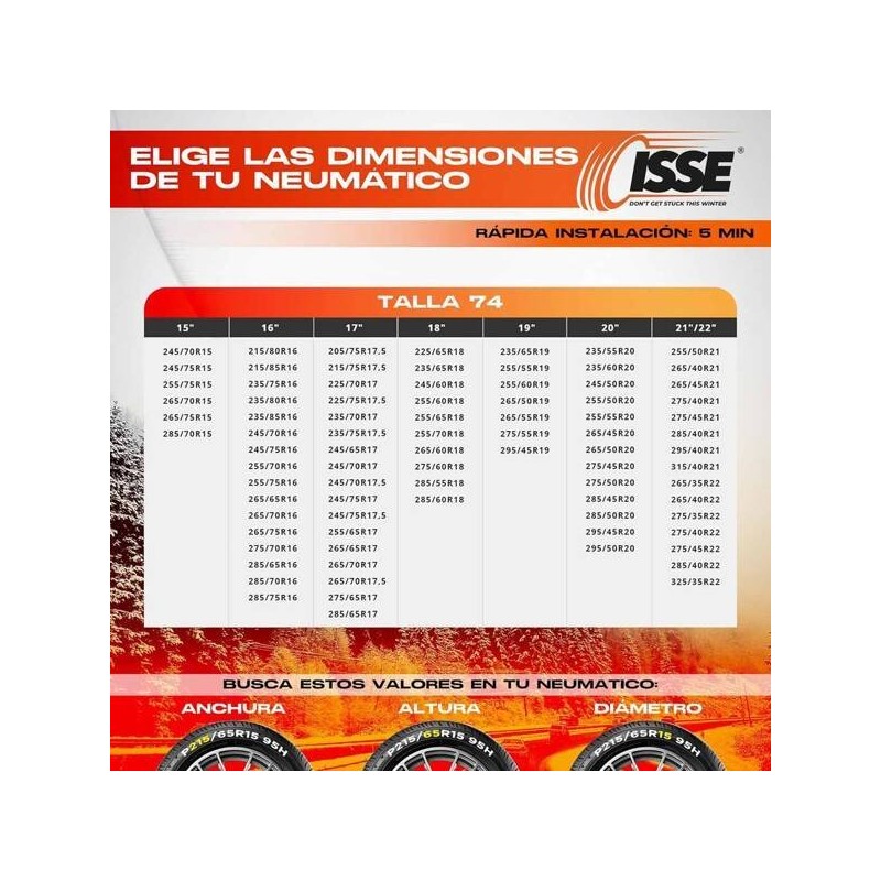 Łańcuchy śniegowe tekstylne Isse Classic rozmiar 74 EN16662-1-2020 ONORM 5121- 2021 2 szt.
