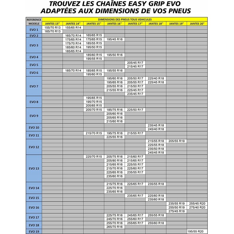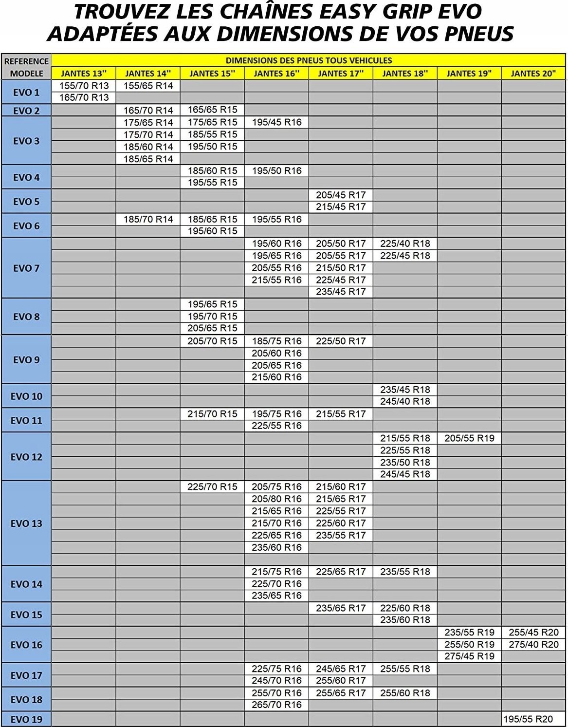 - Łańcuch śniegowy Easy Grip o wysokiej wydajności składa się z opatentowanej sieci z tworzywa kompozytowego z małymi metalowymi pierścieniami i zapewnia bezpieczną jazdę w warunkach zimowych.