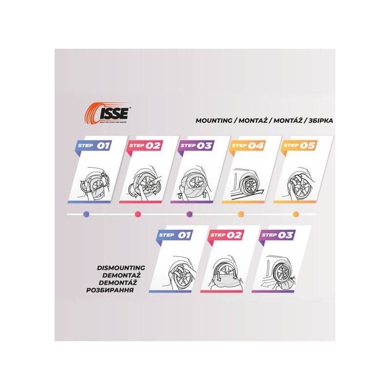 - Łatwość montażu: Intuicyjny i szybki montaż bez konieczności użycia narzędzi. Łańcuchy można nałożyć i zdj? ć w ci? gu kilku minut.