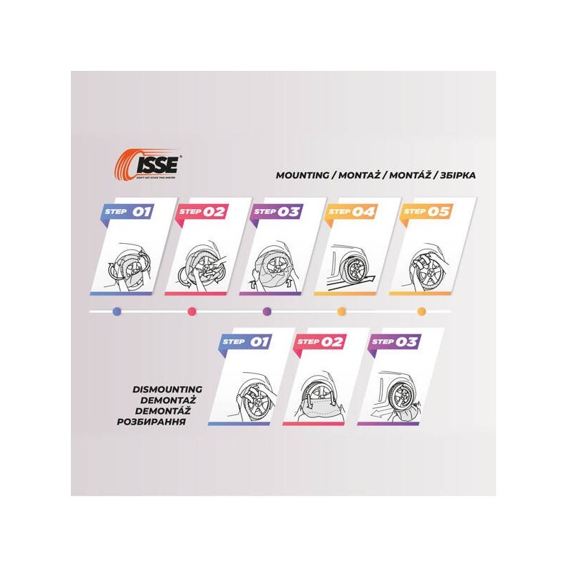 - Łatwość montażu: Intuicyjny i szybki montaż bez konieczności użycia narzędzi. Łańcuchy można nałożyć i zdj? ć w ci? gu kilku minut.