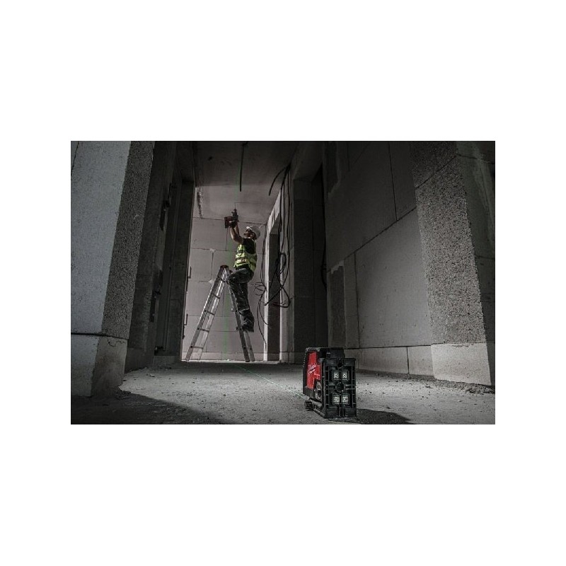 - Laser krzyżowy zasilany akumulatorem REDLITHIUM™ z zieloną wiązką to urządzenie z wszystkimi potrzebnymi funkcjami, które umożliwiają ustawienie linii lasera w pionie i poziomie.
