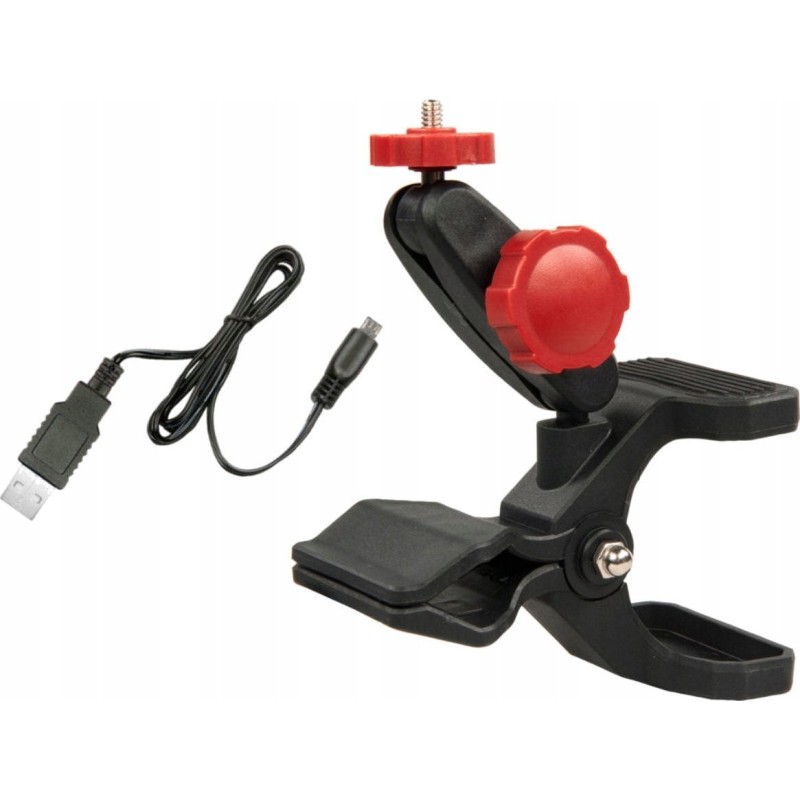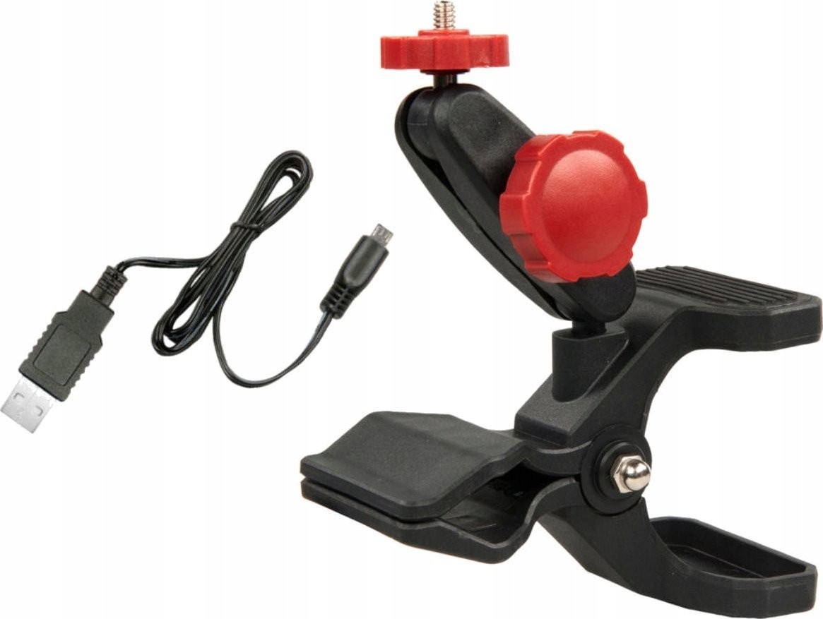 - W zestawie znajduje się uniwersalny zacisk, który ułatwia mocowanie urządzenia do różnych powierzchni, zapewniając elastyczność pracy
