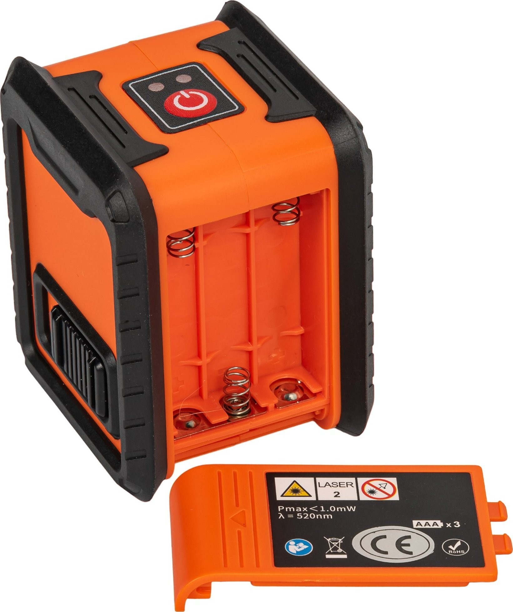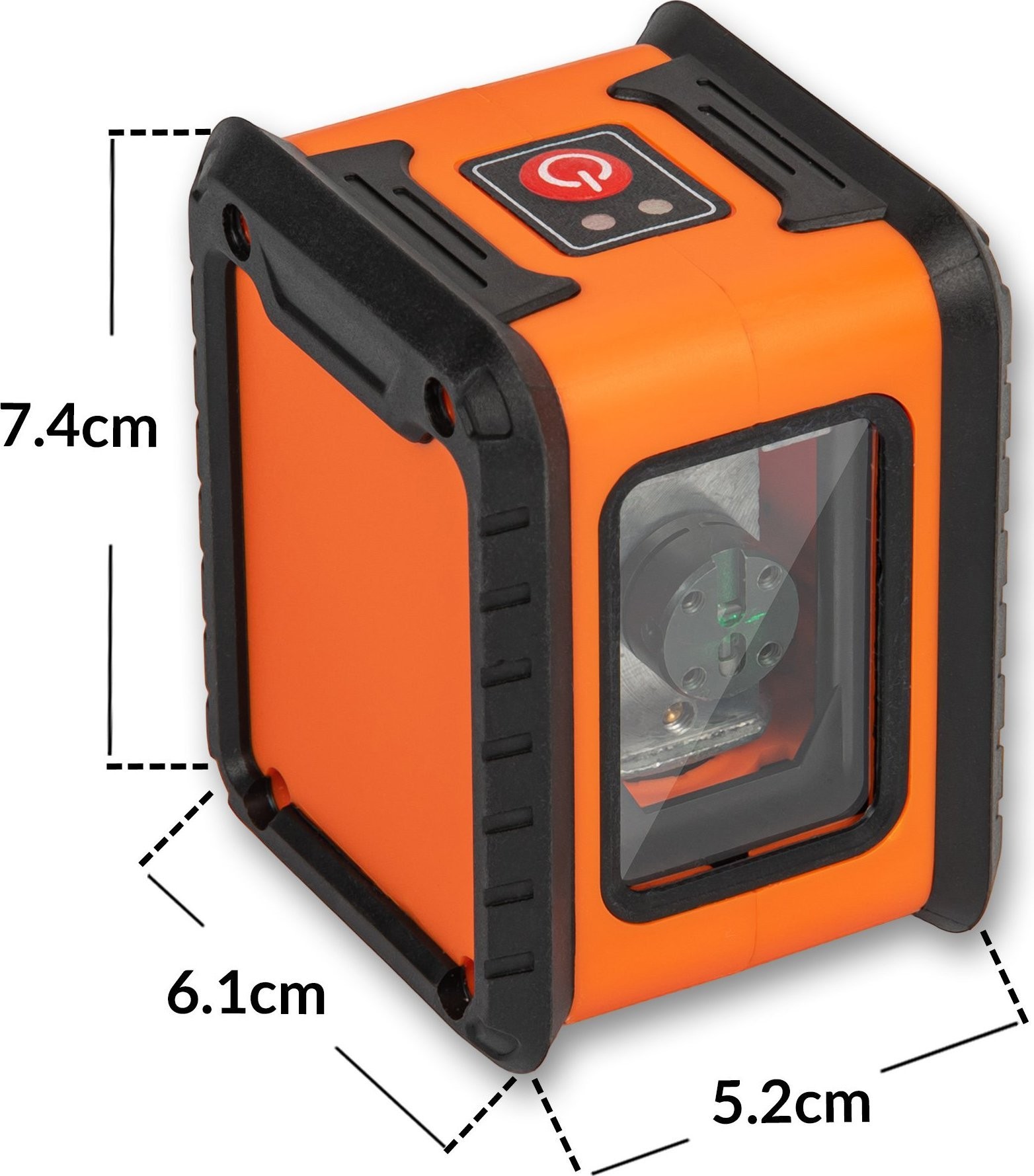 ⭐Nasz laser krzyżowy jest łatwy w obsłudze. Wystarczy włączyć go, aby był gotowy do pracy. Emituje on dwie wiązki zielionego światła o długości 635 nm. Wyznaczone linie mają dokładność do ⅛ cala, a zakres poziomowania wynosi ok 4°.