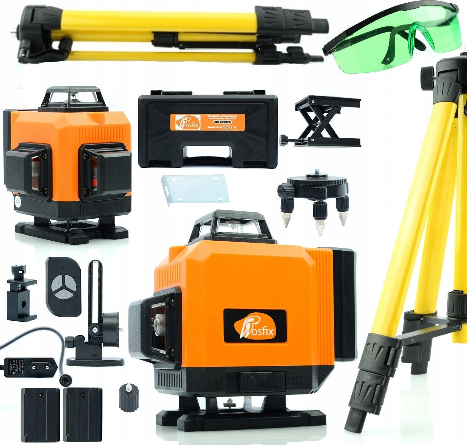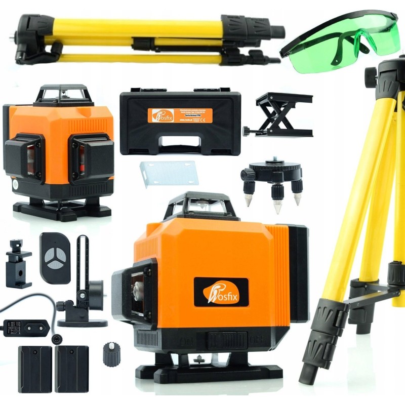 Rosfix Poziomica laserowa Rosfix Orange Tiger 16 linii ROT16L + Statyw 43-120cm do poziomicy laserowej Rosfix z pokrowcem + Zielone okulary zabezpieczające