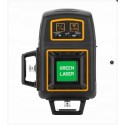 Laser krzyżowy emituje jedną wiązkę poziomą 360 stopni i dwie pionowe 360 stopni w kolorze zielonym