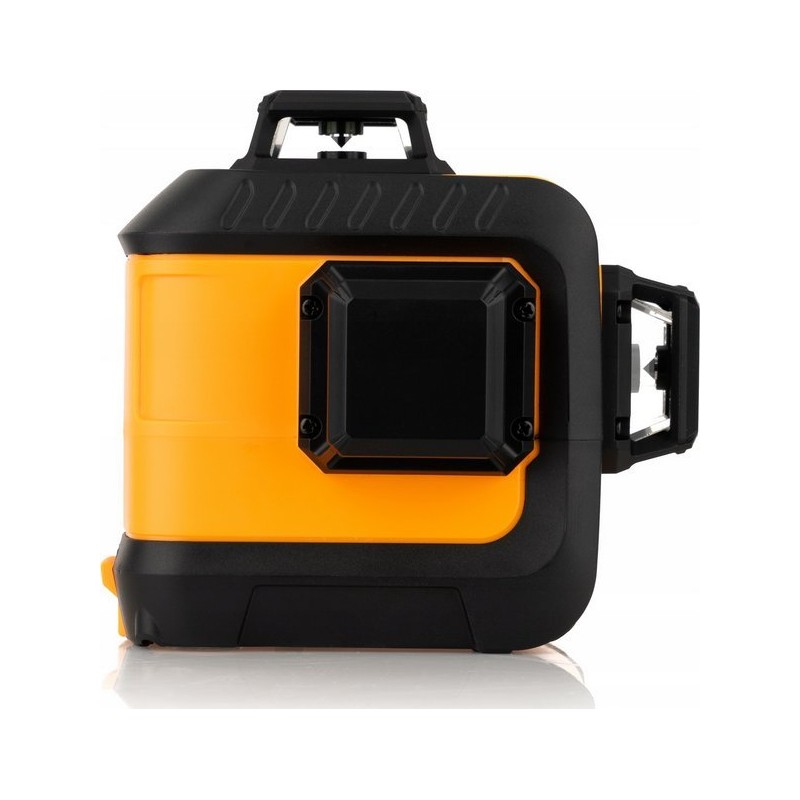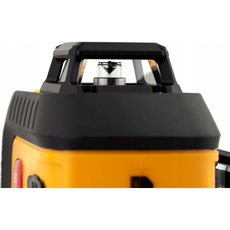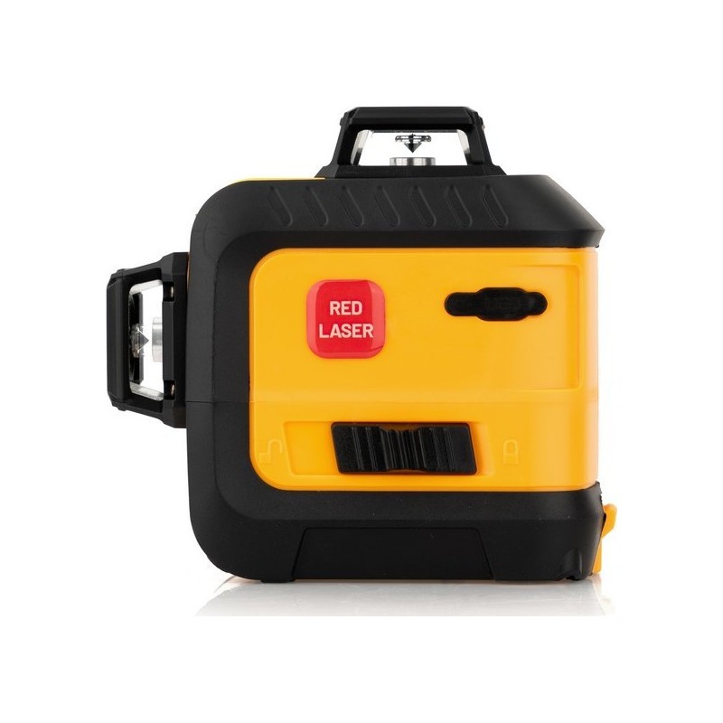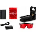 Laser krzyżowy emituje wiązki w trzech płaszczyznach. Każda o zakresie 360 stopni i czerwonym kolorze. Jedną wiązkę poziomą i dwie pionowe przecinające się pod kątem 90 stopni.