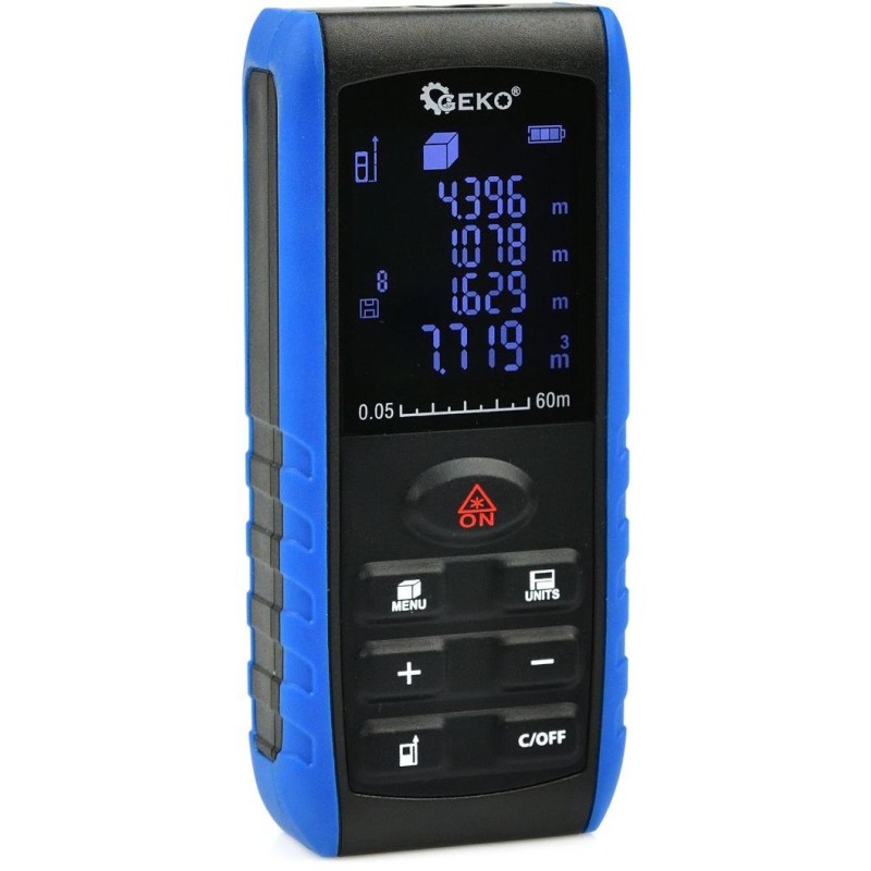 Precyzyjny dalmierz laserowy o zasięgu 60m. Przeznaczony do dokładnego wykonywania różnego rodzaju pomiarów. Urządzenie zapamiętuje do 99 ostatnich pomiarów. Wyposażone w szereg funkcji ułatwiających i przyspieszających prace. Dalmierz pozwala wykonać pomiar pojedynczy, ciągły, obliczanie pola, objętości, długość boku trójkąta (Pitagoras) bazując na pomiarze długości przeciwprostokątnej oraz kąta między przyprostokątną, przeciwprostokątną.
