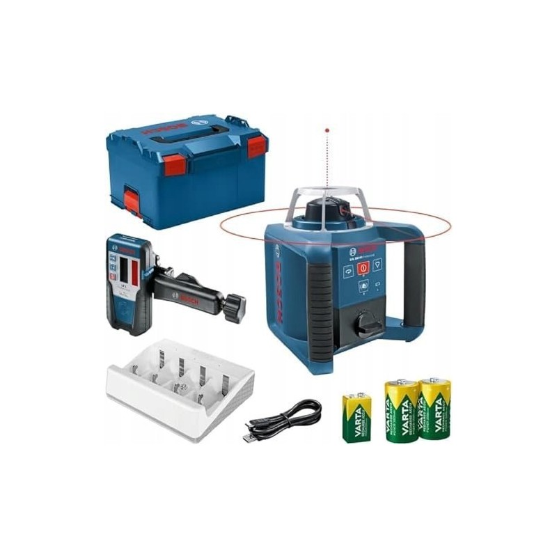 - Zawartość zestawu: Odbiornik laserowy LR 1G, uchwyt, walizka L-BOXX, akumulatory VARTA, ładowarka VARTA
