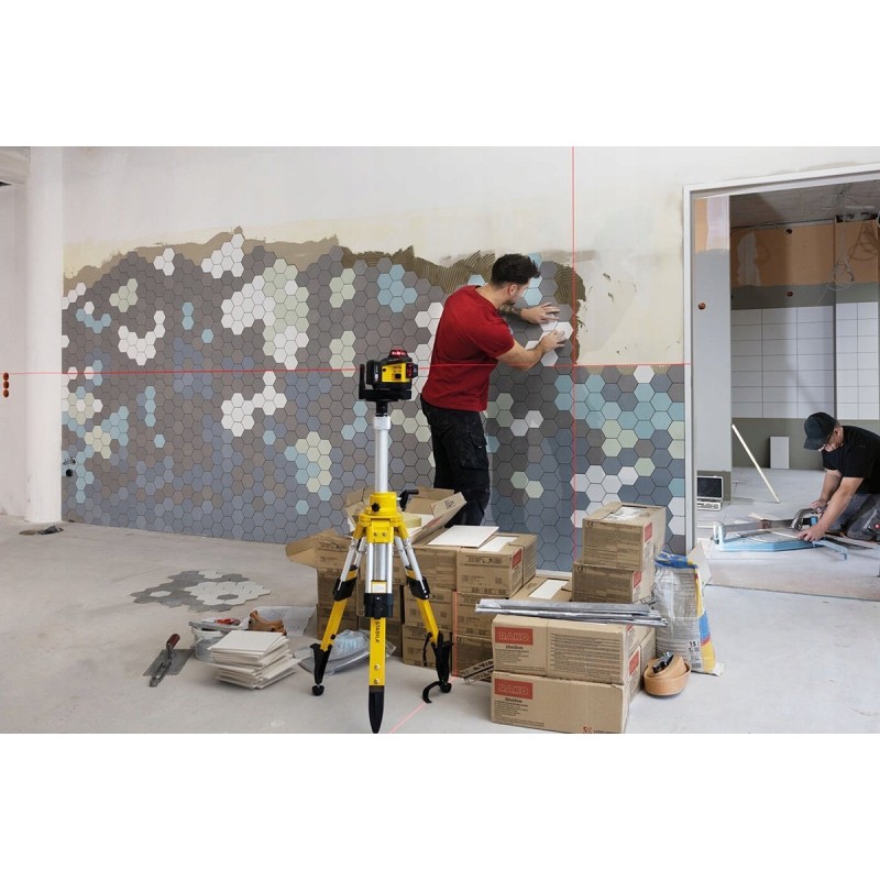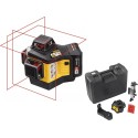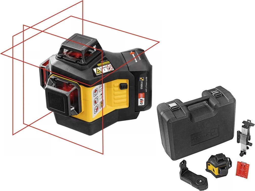 Zasilany akumulatorem CAS 12 V, samoniwelujący laser wieloliniowy z trzema czerwonymi liniami laserowymi 360° do precyzyjnych prac związanych z rozplanowaniem.