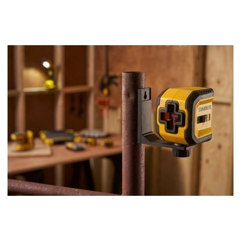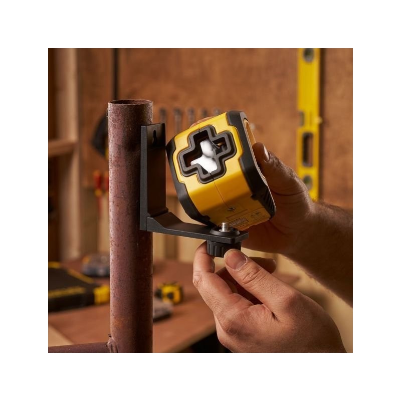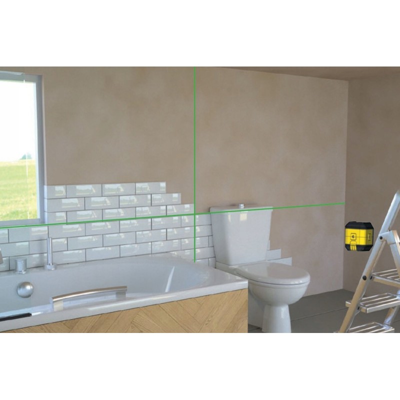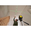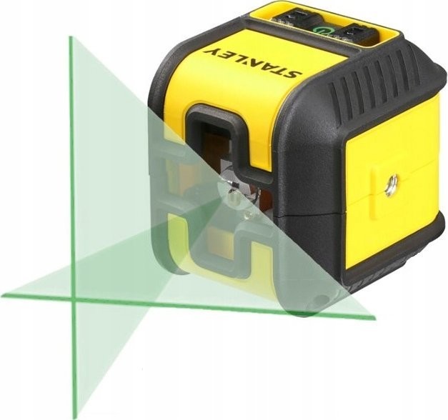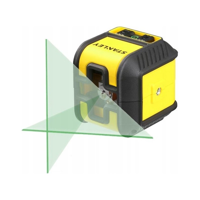 Laser emituje dwie zielone wiązki laserowe (poziomą i pionową) pod kątem 90°