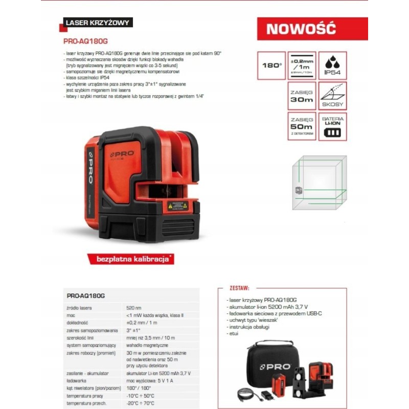 Laser Krzyżowy PRO 180° PRO-AQ180G Zielona Wiązka