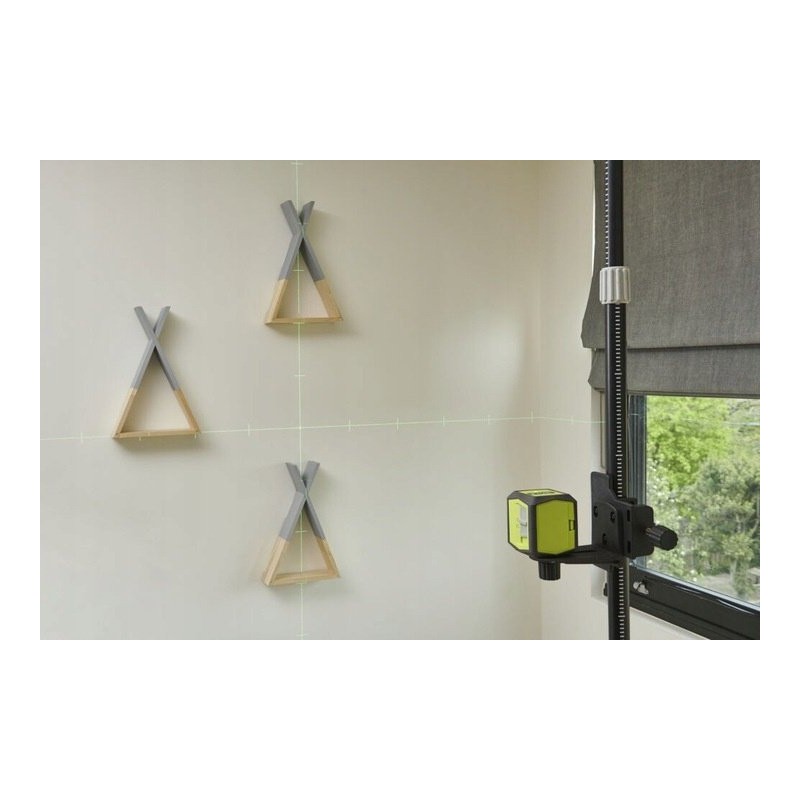 Laser krzyżowy zielony ze znacznikami siatki RBCLLG2 Ryobi emituje zieloną wiązkę, która jest bardzo dobrze widoczna w każdej sytuacji - czyni to model doskonałym wyborem do pracy w trudnych warunkach. Dzięki znacznikom naprowadzającym użytkownik może śledzić wzory w podobnych odległościach, bez konieczności wykonywania pomiarów na całej przestrzeni. Wbudowany wskaźnik LED informuje o poziomie rozładowania baterii, co pomaga lepiej zorganizować pozostały czas pracy.