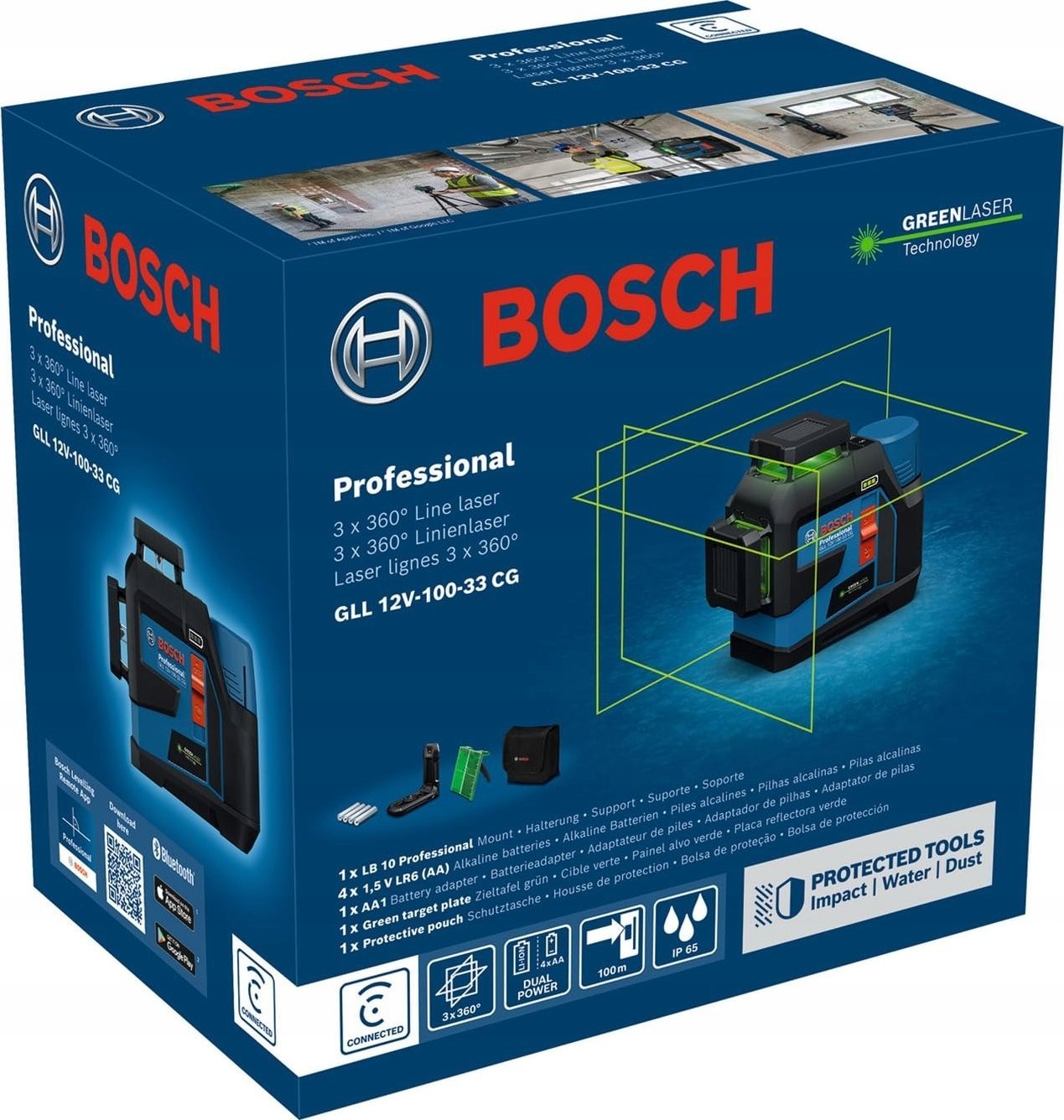 - Zakres dostawy: 4 baterie 1,5 V LR6 (AA), adapter do baterii alkalicznych, laserowa tablica celownicza, torba, uchwyt obrotowy RM 20 Professional