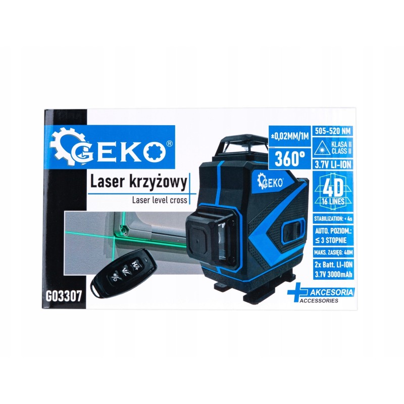 Specyfikacja techniczna laser krzyżowy 360° 4D Geko