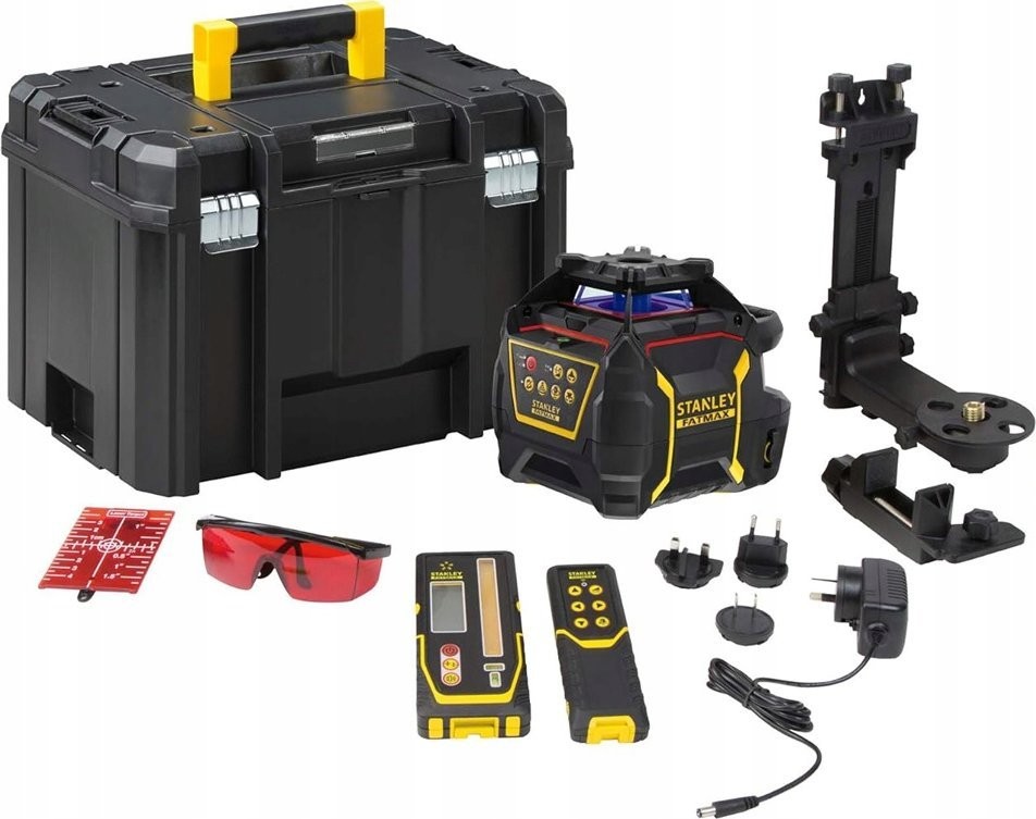 detektor wiązki laserowej, uchwyt detektora, okulary, tarcza odblaskowa, ładowarka