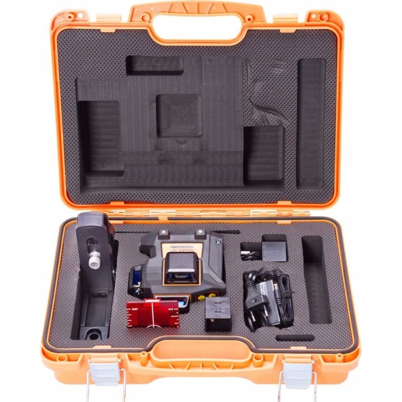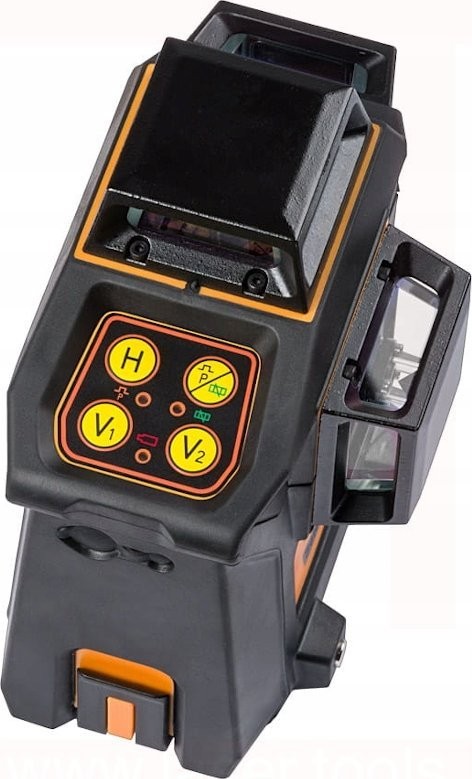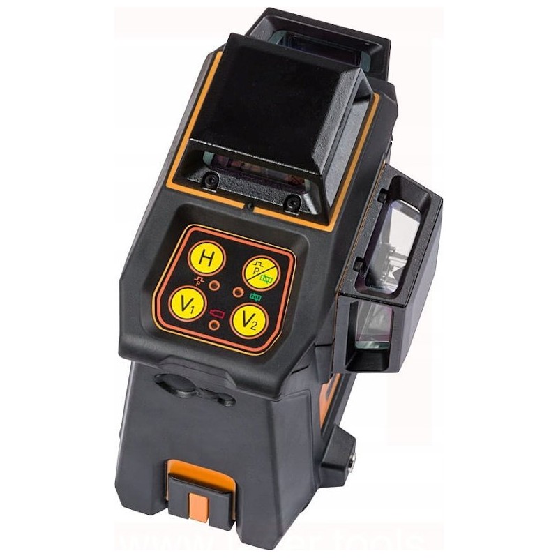 - Sześć krzyży laserowych ustawionych pod kątem prostym – pozwalają wyznaczać poziomy, piony oraz kąty proste