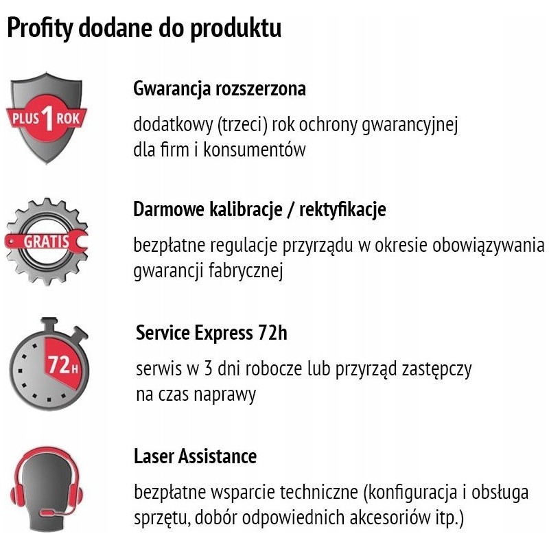 - Dokładność instrumentu: ± 2 mm / 10 m