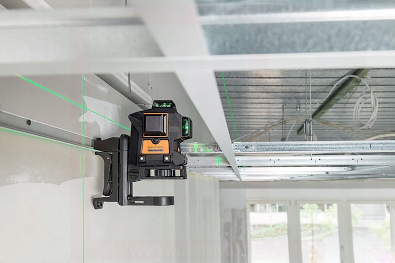 - Funkcja pionownika - krzyżujące się linie pionowe umożliwiają przenoszenie punktów z podłogi na sufit