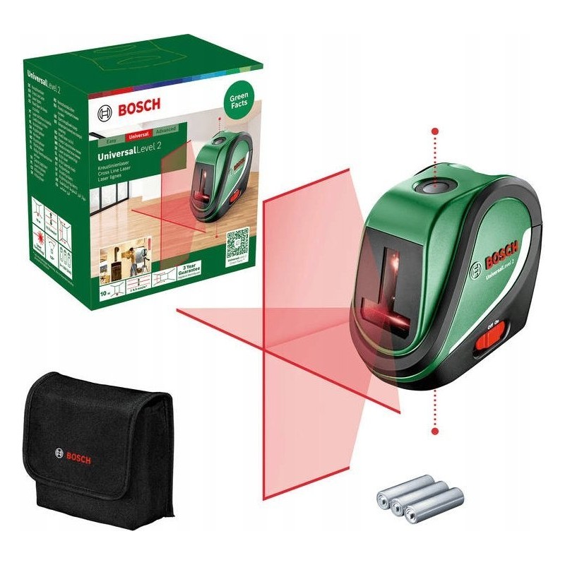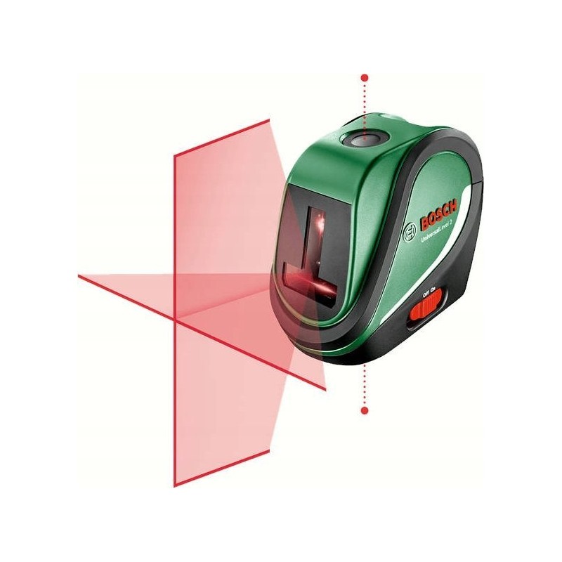 Dzięki łatwej obsłudze, precyzji i wysokiej jakości, jasnym diodom laserowym laser UniversalLevel 2 ułatwia wykonywanie projektów wykończeniowych wymagających dużej dokładności. Trzy zaprogramowane tryby (skrzyżowane linie z funkcją automatycznej niwelacji, skrzyżowane linie i punkty w pionie z funkcją automatycznej niwelacji oraz funkcja nachylenia) pozwalają na łatwe wyrównywanie elementów i przenoszenie punktów. Kąt rozpraszania wiązki 120° pozwala na pokazywanie dłuższych linii laserowych i gwarantuje dokładność nawet przy niewielkiej odległości. Urządzenie posiada również wbudowany gwint 1/4'' do mocowania na statywie, oferuje dokładność niwelacyjną ±0,5 mm/m i maksymalny zasięg 10 m. Jest idealne do zawieszania obrazów lub półek, układania tapet, rozmieszczania opraw oświetleniowych oraz instalowania poręczy i karniszy.