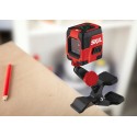 Laser wyposażony jest w funkcję samopoziomowania, co eliminuje potrzebę ręcznej regulacji. Po włączeniu, urządzenie jest gotowe do pracy w ciągu zaledwie kilku sekund. Oferuje możliwość rzutowania linii laserowych pod dowolnym kątem oraz wyświetlania dwóch linii równocześnie (poziomej i pionowej). Dodatkowe znaczniki na liniach laserowych ułatwiają precyzyjne wyznaczanie odstępów.