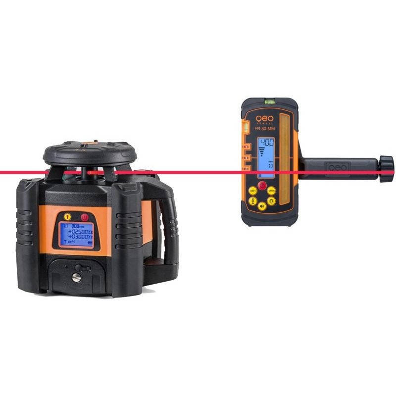 - Wyposażenie: niwelator laserowy FL 300HV-G EasyGRADE, cyfrowy detektor FR 80-MM, metalowy uchwyt detektora, zintegrowana podstawka, pilot zdalnego sterowania, inteligentna ładowarka, akumulatory Li-Ion, zasobnik baterii alkalicznych, baterie do pilota i detektora, pojemnik transportowy.