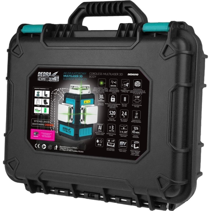 Profesjonalne narzędzie Multilaser 3D DEDRA SAS+ALL DED6910 - idealne nie tylko do prac budowlanych, ale również do ozdabiania ścian czy montażu szafek.