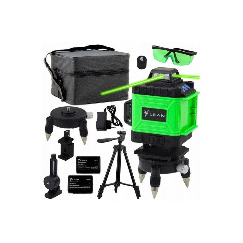 Poziomica Laserowa Płaszczyznowa 4D 16 Linii Torba 2 Akumulatory Zielona