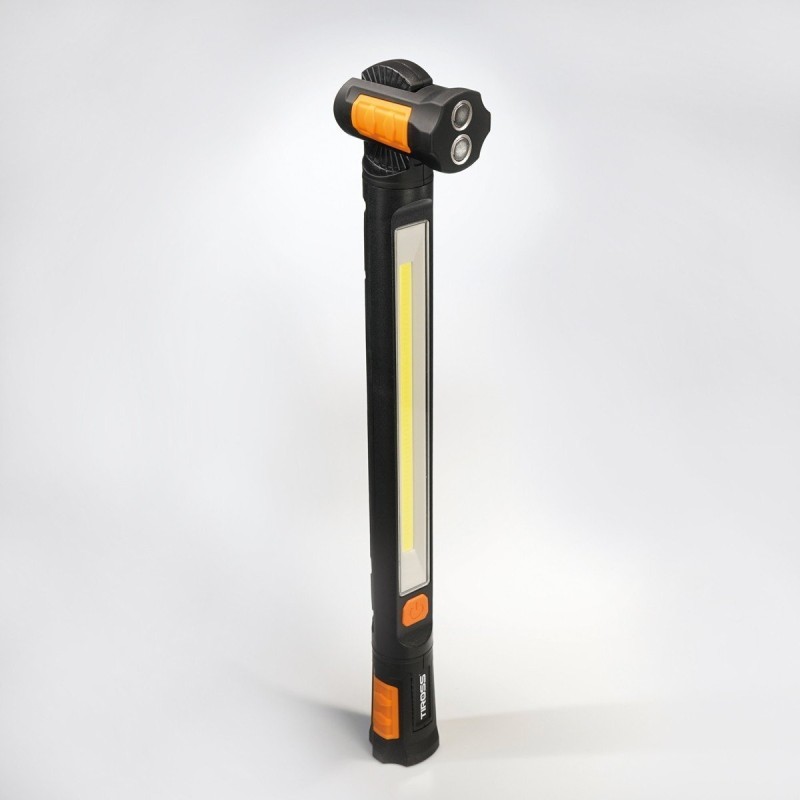 Podłużna lampa warsztatowa z mocną żarówą 10W COB LED emitującą światło o mocy 1000 lumenów została stworzona z myślą o wydajnym oświetlaniu dużych pomieszczeń. Wyposażona w dwa wbudowane haki o zakresie ruchu 360°może być mocowana w dowolnym miejscu i o dowolnym nachyleniu, dostarczając strumień światła o oczekiwanym kącie padania. Pojemna bateria ładowana do pełna w 5 godzin zapewnia do 180 minut nieprzerwanej pracy. Dodatkowo lampa została wyposażona w 4 magnesy na dwóch końcach, ułatwiając montowanie na metalowych powierzchniach płaskich, bez miejsca na wysuwane uchwyty.