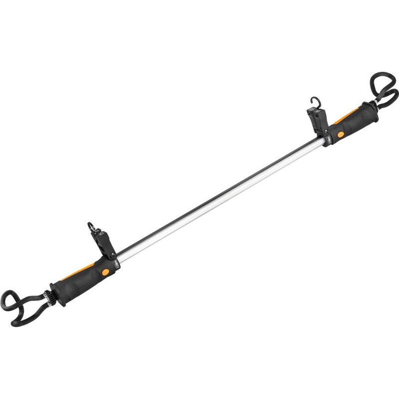 Lampa komory silnika akumulatorowa NEO (nr ref. 99-048) wyposażona jest w diodę LED SMD o mocy 10W i strumieniu świetlnym 1000 lumenów. Posiada 3 funkcje świecenia: 100%, 50% oraz stroboskop. Lampa zasilana jest dołączonym do zestawu akumulatorem 3.7V Li-Ion o pojemności 4000 mAh. Magnesy w podstawach pozwalają na stabilne umiejscowienie lampy na powierzchniach metalowych. Dodatkowym atutem są haki boczne oraz regulowane uchwyty w zakresie od 130 do 200 cm. Lampa idealnie sprawdzi się podczas napraw samochodów.