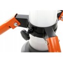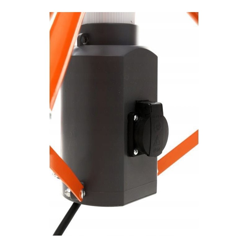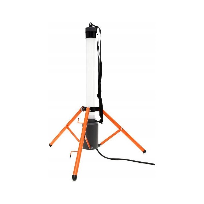 Odpowiednia lampa do oświetlenia rejonu pracy podczas prac budowlanych, remontowych, wykończeniowych, do zastosowania w garażach, warsztatach i innych pomieszczeniach, gdzie potrzebne jest jasne oświetlenie. Lampa oparta na diodach LED typu SMD2835 posiada zasilanie elektryczne. Lampa jest wyposażona w standardowe gniazdo elektryczne 230V, umieszczone na dolnej części obudowy, umożliwiające podłączenie zewnętrznych narzędzi o maksymalnej mocy 2000W. Konstrukcja lampy zapewnia pełnym kątom oświetlenie w 360 stopniach, możliwość zawieszenia na załączonym haku, ustawienie na trójnogu oraz wygodne przenoszenie za pomocą dołączonego paska na ramię.