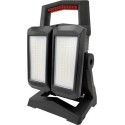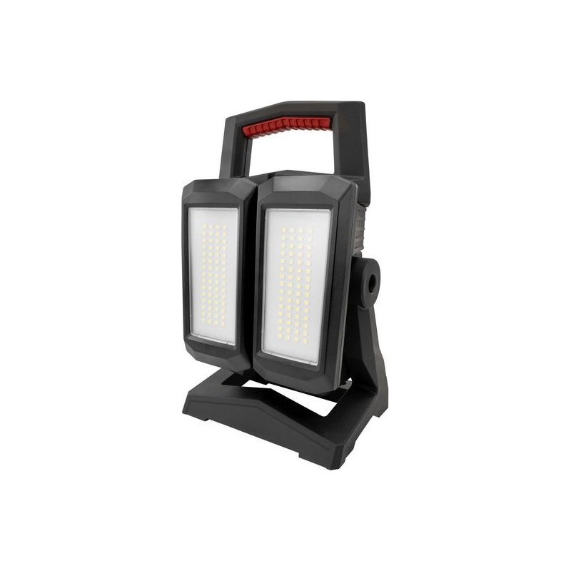 HS4500R-DUO to profesjonalna lampa ręczna z wymiennym akumulatorem i jasnością, którą można regulować w czterech stopniach od 750 do 4500 lumenów. 120 wbudowanych diod LED znajduje się w oddzielnie obracanych jednostkach oświetleniowych. Obudowa wykonana jest z wytrzymałego tworzywa ABS i posiada stopień ochrony IP54 przed wilgocią oraz IK07 przed uderzeniami. Jego podstawę można również wykorzystać do zawieszenia. Dzięki czasowi świecenia do 12 godzin HS4500R-DUO jest niezawodnym partnerem w warsztacie lub na budowie, który może być również używany jako power bank do ładowania innych urządzeń.