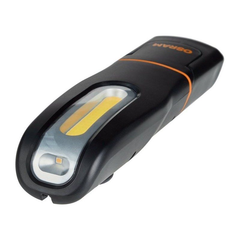 Osram LEDinspect MINI250. Typ latarki: Latarka ręczna, Kolor produktu: Czarny, Pomarańczowy. Typ lamp: LED, Ilość lamp: 2 lamp(y), Moc lampy: 7,4 W. Rodzaj baterii: Wbudowana bateria, Technologia baterii: Litowo-jonowa (Li-Ion). Szerokość produktu: 56 mm, Głębokość produktu: 200 mm, Wysokość produktu: 41 mm. Szerokość opakowania: 50 mm, Głębokość opakowania: 90 mm, Wysokość opakowania: 210 mm