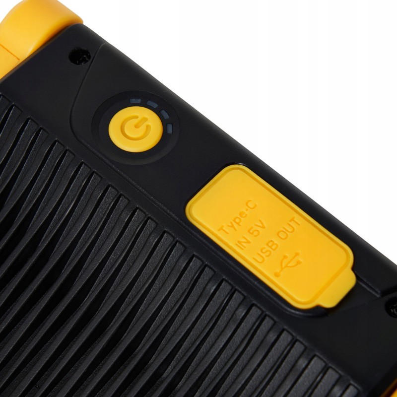 Stanley SXLS50118E jest wyposażony w akumulator Li-Ion o pojemności 2000 mAh, który można ładować za pomocą portów USB C oraz USB A. Dzięki temu, lampa może również pełnić rolę power banku, co zwiększa jej wszechstronność i użyteczność w terenie.