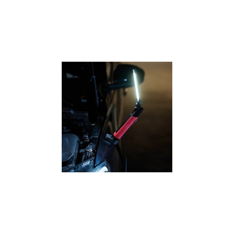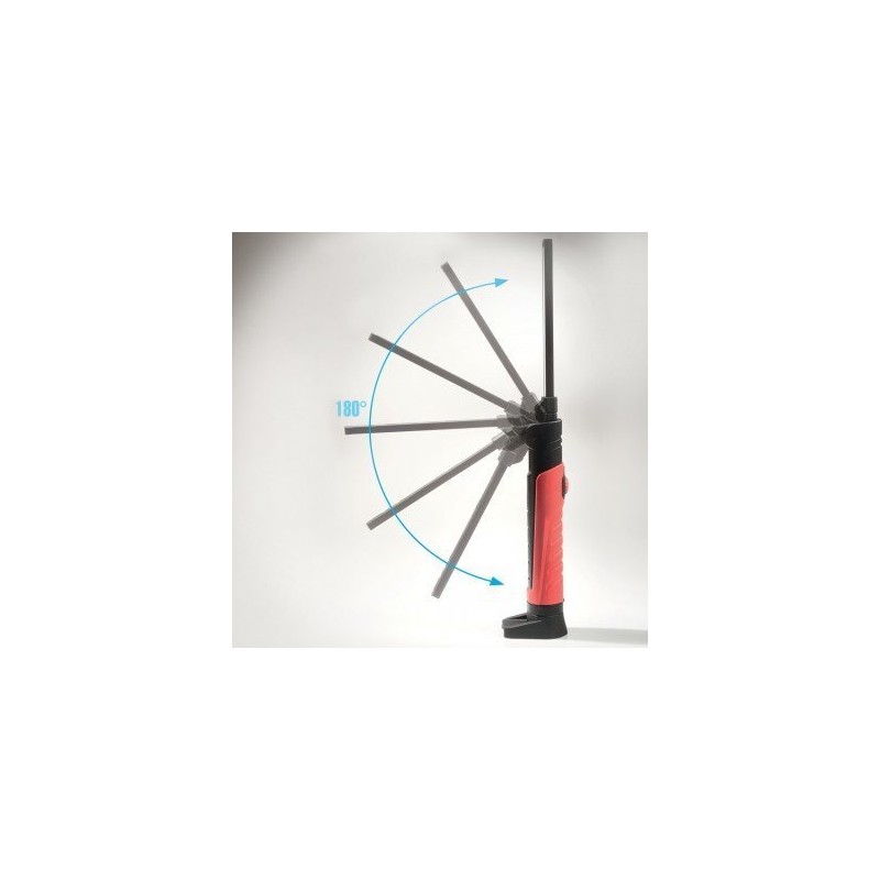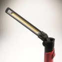 Wielofunkcyjna lampa wyposażona w dwa niezależne źródła światła tworzy komfortowe warunki do pracy w nawet najbardziej zaciemnionych pomieszczeniach. Składana konstrukcja z magnesową podstawką umożliwia dostosowanie kąta padania światła, ułatwiając precyzyjne prace manualne. Dzięki wygodnemu przełącznikowi z regulacją światła, natężenie w wygodny i łatwy sposób może zostać dostosowane do panujących warunków. Ładowana do pełna w 4 godziny gwarantuje do 16 godzin nieprzerwanej prac.