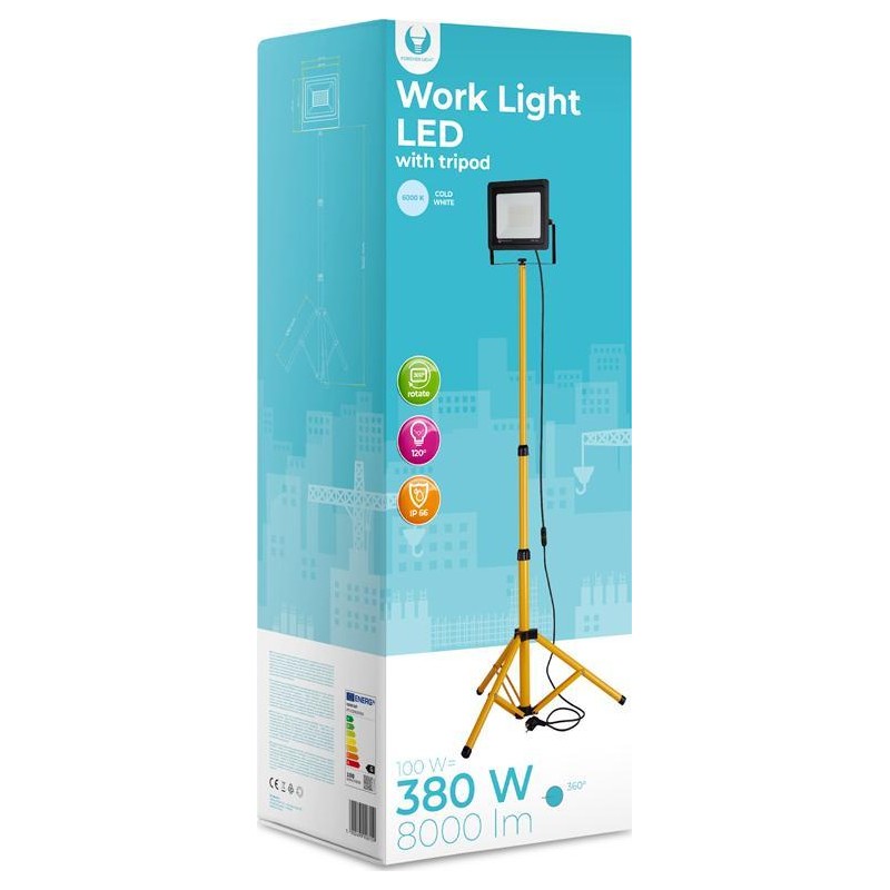 Naświetlacze LED są odpowiednikami tradycyjnych energochłonnych halogenów. Naświetlacz Forever Light charakteryzuje się wysokiej jakości diodami SMD o długiej żywotności. Urządzenie jest zamknięte w aluminiowej, wodoszczelnej obudowie z solidnym radiatorem odprowadzającym ciepło. Produkt ma duży zakres regulacji kąta świecenia. Pełna regulacja kąta w poziomie wynosi 360°, a w pionie 300°. Naświetlacz Forever Light jest wodoodporny i pyłoszczelny na poziomie IP66. Dołączony specjalistyczny statyw typu „tripod” pozwala na oświetlanie dużej przestrzeni praktycznie w dowolnych warunkach. Trwała i stabilna konstrukcja sprawdzi się na budowach, przy pracach ogrodowych lub jako dodatkowe oświetlenie warsztatowe. Naświetlacze typu Proxim emitują neutralną barwę światła (4500K) lub zimną (6000K). Moc urządzeń przekłada się łącznie na 8000 lumenów przy mocy 100W. Zestaw zawiera: 1. Naświetlacz; 2. Statyw; 3. Konektor; 4. Kabel z wtyczką; 5. instrukcję. Czas nagrzewania: < 1 s Czas zapłonu: < 0,5s Częstotliwość pracy: 175-265V, 50-60Hz Długość kabla: 300,00 EAN: 5900495926159 Gwarancja: 12,00 Kąt świecenia: 120° Liczba diod: 72,00 Liczba lumenów: 8 000,00 Liczba włączeń/wyłączeń: > 15 000 Marka: Forever Light Moc: 50,00 Natężenie prądu: 250,00 Producent: TelForceOne Rodzaj diody: 2835 Ściemniacz: nie Stopień ochrony (IP): IP66 Temperatura barwowa: 6 000,00 Temperatura pracy: -25°C do +60°C Typ kabla: 3 x 0,75 mm² Współczynnik CRI (Ra): > 80 Współczynnik mocy (PF): >0,9 Współczynnik zachowania strumienia świetlnego (LLMF): 85% Wymiar głębokości opakowania: 22,50 Wymiar szerokości opakowania: 16,50 Wymiar wysokości opakowania: 62,50 Wymiary (mm) dł. x szer.x wys.: 250 x 284 x 30 mm Wysokość: 160,00 Żywotność: 3 000,00