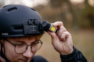 - w zestawie samoprzylepne mocowanie na kask (taśma 3M)
