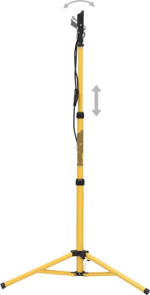 Za sprawą aluminiowej obudowy i szklanej osłony ta lampa robocza zapewnia dobre odprowadzanie ciepła i jest lekka. Strumień świetlny o wartości 7000 lm i kąt świecenia 120° oferuje doskonałe oświetlenie. Dodatkowo reflektor emituje światło o temperaturze barwowej 3000 K, zapewniając optymalne warunki oświetleniowe w dowolnej przestrzeni. Lampa robocza jest wsparta na stalowym trójnogu, co zwiększa jej solidność i stabilność. Jego wysokość można regulować zgodnie z własnymi preferencjami. Dzięki solidnie podłączonemu przewodowi zasilającemu o długości 3 m z wtyczką lampę można ustawić w dowolnym miejscu w pomieszczeniu.