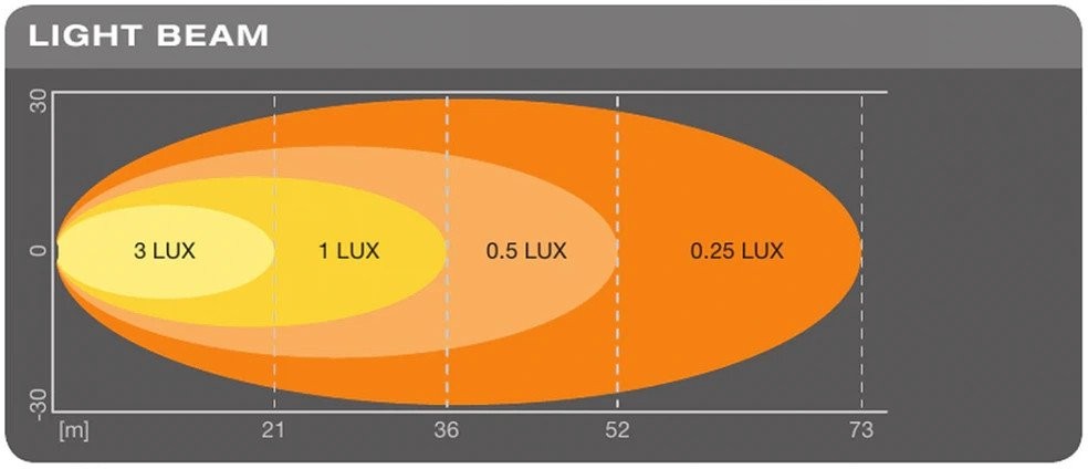 Lampa oferuje imponujący zasięg do 36 metrów, co znacząco poprawia widoczność zarówno w nocy, jak i w trudnych warunkach pogodowych. Strumień świetlny wynoszący 1100 lm oraz temperatura barwowa do 6000K sprawiają, że światło jest porównywalne do naturalnego światła dziennego, co zwiększa bezpieczeństwo na drodze.