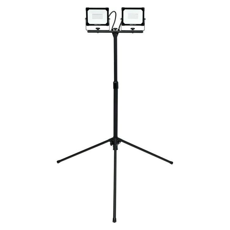 Dwa płaskie naświetlacze z wydajnymi diodami SMD LED umieszczone na stabilnym, regulowanym stojaku. Klasa szczelności IP65 pozwala na korzystanie z oświetlenia w warunkach zewnętrznych.