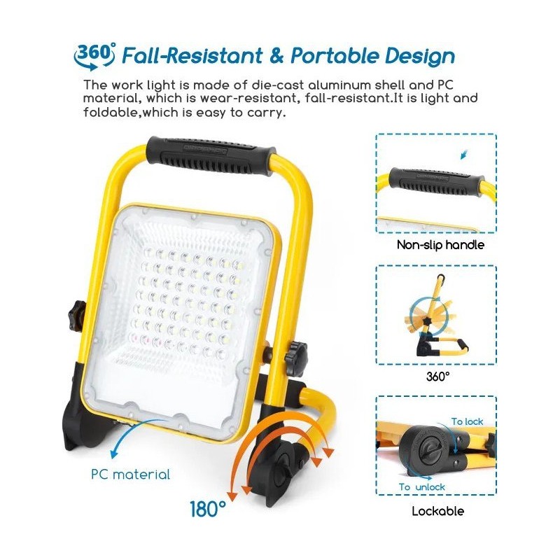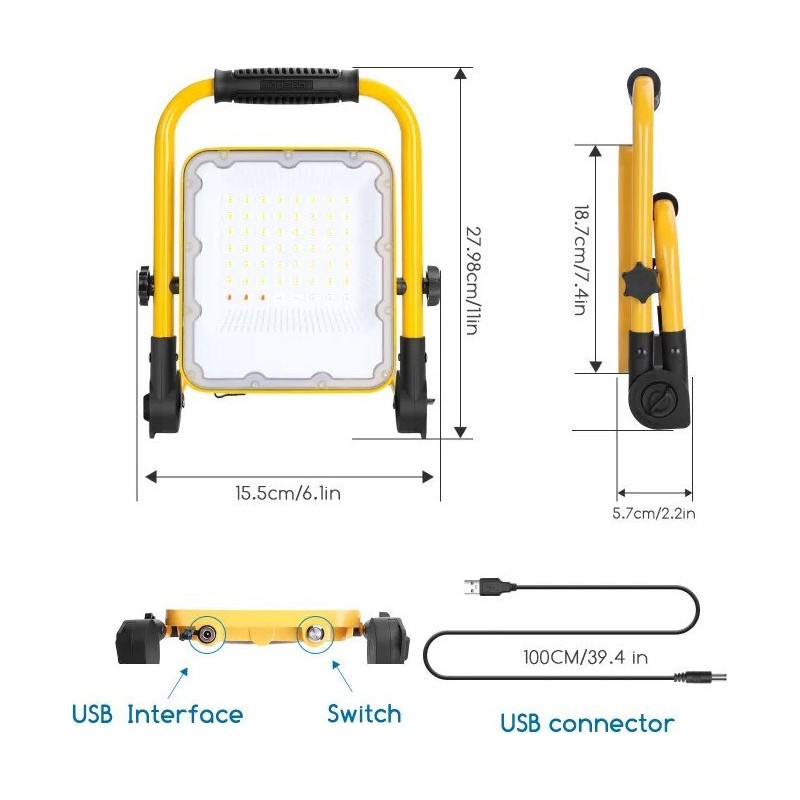 Lekki i łatwy do przenoszenia, najlepsze wrażenia świetlne. Wysokiej jakości chipy LED. Optyka skupiająca soczewkę z oświetleniem na większą odległość i wyższą jasnością. 4 rodzaje trybów oświetlenia do przełączania. wielokrotna regulacja kąta zapewniająca precyzyjną oświetlenie. Konstrukcja ładowania przez USB, długi czas działania, łatwa do użytku na zewnątrz. Poziom ochrony IP65, wodoodporna i pyłoszczelna, bezpieczna do użytku na zewnątrz.. Jedna lampa spełnia różne potrzeby. Lampa o przenośnej konstrukcji, łatwa do przenoszenia, nieustraszona ciemność, oświetlenie w każdym rogu, które czynią nasze życie i pracę łatwiejszym.. Zastosuj chipy LUMILEDS, wysokiej jakości źródło światła, wysoką jasność, wysoką wydajność świetlną, awaryjność przy słabym oświetleniu i długą żywotność. Migają światła niskie/średnie/wysokie/ostrzegawcze, działają jednym klawiszem, można używać wielu rodzajów oświetlenia.. Wspornik można obracać o 180deg;, a korpus lampy można obracać o 360deg;, co można regulować pod wieloma kątami w celu dostosowania do oświetlenia potrzeby.. Szerokie zastosowanie: spełnia wymagania biwakowania, nocnego łowienia ryb i innych zajęć na świeżym powietrzu oraz innych potrzeb, takich jak oświetlenie awaryjne w domu, praca w nocy, oświetlenie placu budowy itp.