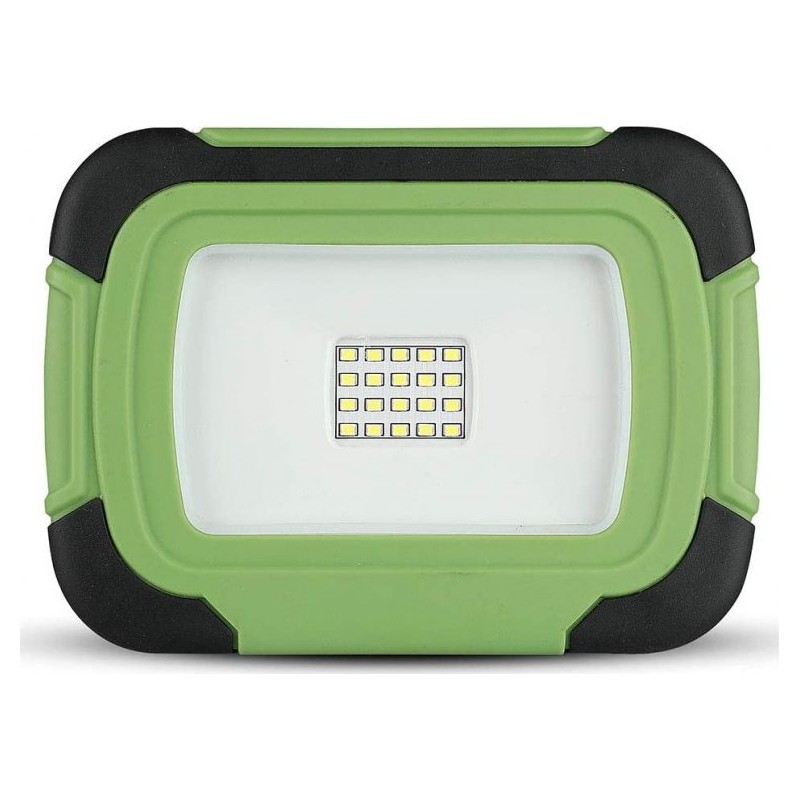 Reflektor V-Tac VT-20-R VT-20-R jest naświetlaczem akumulatorowym zbudowanym z wysokiej jakości chipów LED Samsung. Akumulator ma dużą pojemność, co gwarantuje długą żywotność i większą liczbę cykli ładowania. Reflektor może być ładowany przez port micro-USB. Idealną rzeczą w tej wersji jest to, że jest on zaprojektowany z regulowanym uchwytem, dzięki czemu jest przenośny i łatwy w użyciu, a także zawiera funkcję SOS. Nadaje się do obozów trekkingowych, podróżników, operacji awaryjnych, itp. Specyfikacja: Kolor: zielony Materiał: tworzywo sztuczne Wymiary: 17,5 x 12,5 cm (dł. x szer.) Waga: 0,779 kg Gwarancja: 2 lata Dane techniczne: Kolor światła: biały dzienny Pobór mocy: 20W Odwzorowanie kolorów: > 80 CRI Kąt wiązki: 100° Żywotność: 30.000 godzin Stopień ochrony: IP44 Temperatura pracy: -20 °C do +45 °C Ściemnianie: nie Typ baterii: 3.7V Li-Ion 7200mAh Ilość ledów: 36 Liczba lumenów: 1400 Cykle włączania/wyłączania: >15.000 Wyjście USB: 5V, 1A