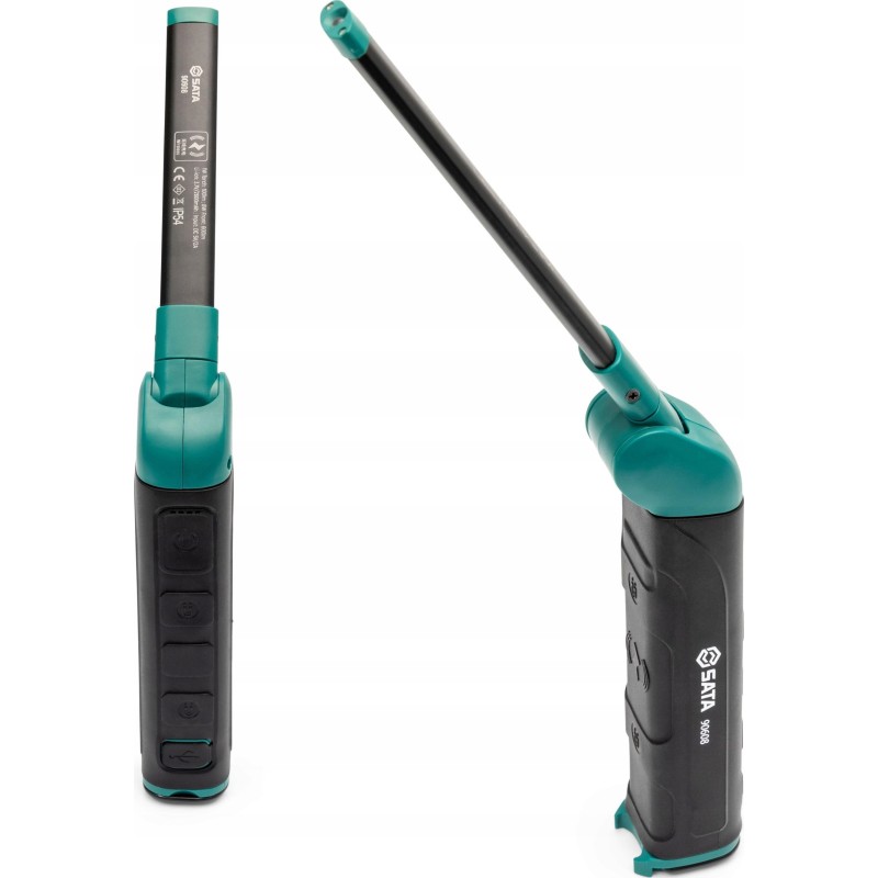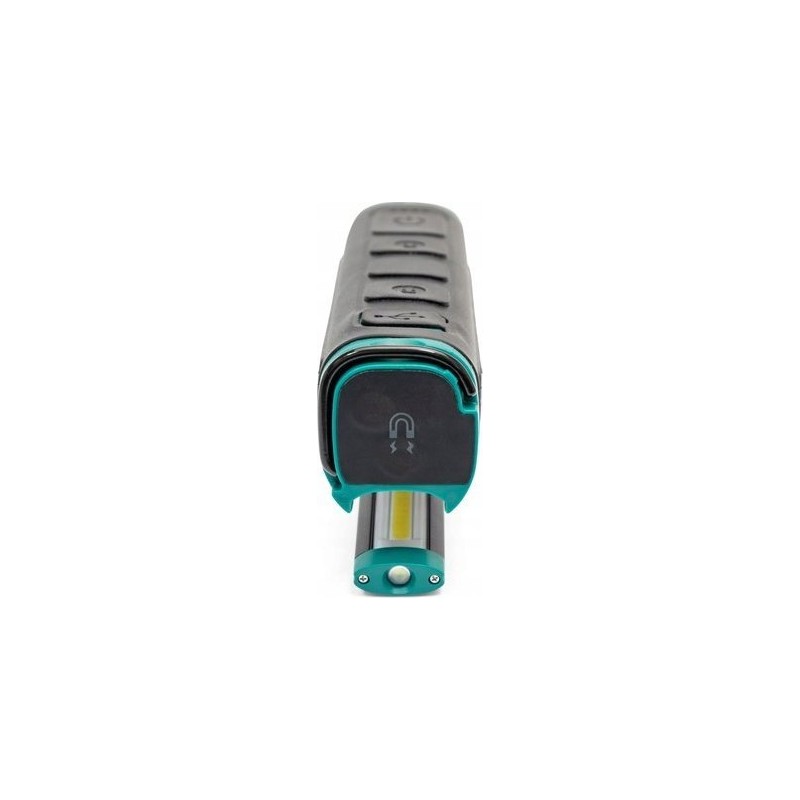 Jasne światło w przedniej części o mocy 600 lumenów, a światło górne o mocy 100 lumenów, wraz z eleganckim designem sprawiają, że ta lampa robocza jest idealnym rozwiązaniem przy słabym oświetleniu. Elastyczna konstrukcja głowicy, która można skierować o 180° w górę i obrócić o 270°, pozwala skierować światło dokładnie tam, gdzie jest potrzebne. Silne magnesy na tylnej i dolnej części umożliwiają umieszczenie lampy w dowolnym miejscu. Czas pracy wynosi do 10 godzin. Lampa może być ładowana bezprzewodowo i jest kompatybilna z bezprzewodowymi stacjami ładowania ST90609 i ST90610 (stacje ładowania są sprzedawane oddzielnie).