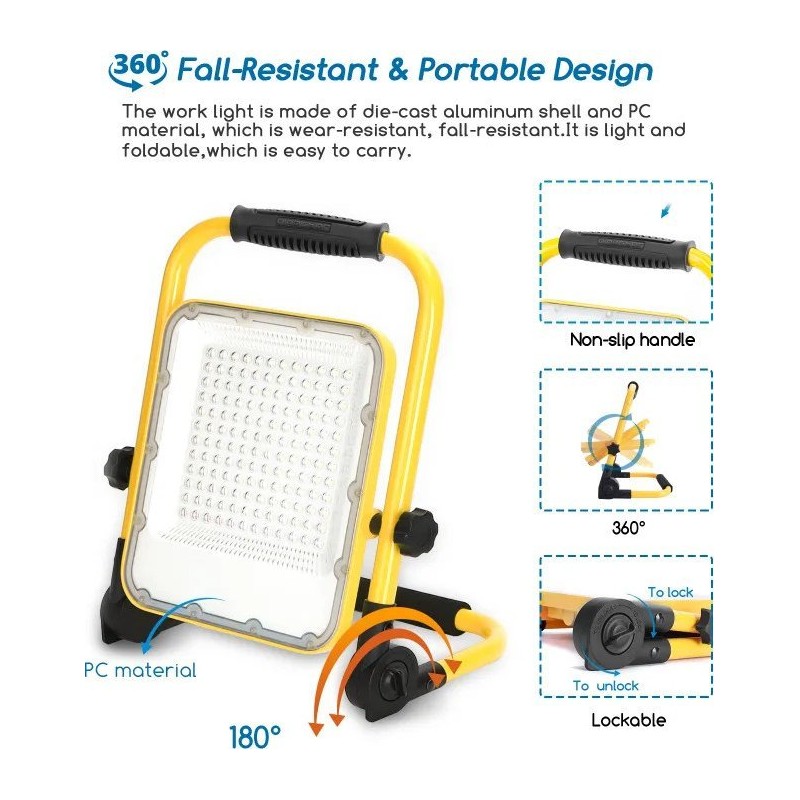 Lekki i łatwy do przenoszenia, najlepsze wrażenia świetlne. Wysokiej jakości chipy LED. Optyka skupiająca soczewkę z oświetleniem na większą odległość i wyższą jasnością. 4 rodzaje trybów oświetlenia do przełączania. wielokrotna regulacja kąta zapewniająca precyzyjną oświetlenie. Konstrukcja ładowania przez USB, długi czas działania, łatwa do użytku na zewnątrz. Poziom ochrony IP65, wodoodporna i pyłoszczelna, bezpieczna do użytku na zewnątrz.. Jedna lampa spełnia różne potrzeby. Lampa o przenośnej konstrukcji, łatwa do przenoszenia, nieustraszona ciemność, oświetlenie w każdym rogu, które czynią nasze życie i pracę łatwiejszym. Zastosuj chipy LUMILEDS, wysokiej jakości źródło światła, wysoką jasność, wysoką wydajność świetlną, awaryjność przy słabym oświetleniu i długą żywotność. Migają światła niskie/średnie/wysokie/ostrzegawcze, działają jednym klawiszem, można używać wielu rodzajów oświetlenia.. Wspornik można obracać o 180deg;, a korpus lampy można obracać o 360deg;, co można regulować pod wieloma kątami w celu dostosowania do oświetlenia potrzeby.. Szerokie zastosowanie: spełnia wymagania biwakowania, nocnego łowienia ryb i innych zajęć na świeżym powietrzu oraz innych potrzeb, takich jak oświetlenie awaryjne w domu, praca w nocy, oświetlenie placu budowy itp.