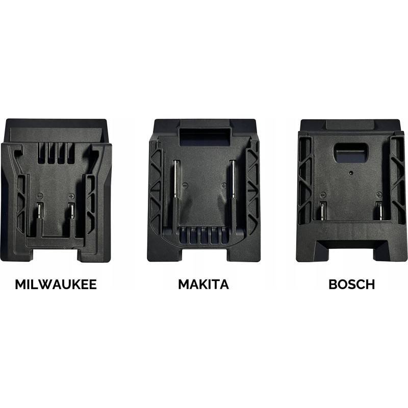 - Zasilanie: adapter typu MAKITA, Bosch lub Milwaukee (bateria nie wchodzi w skład zestawu)