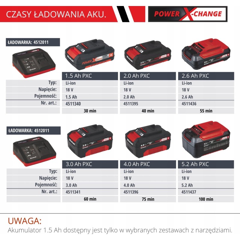 – Należy do rodziny Power X-Change, wymagany 1 akumulator 18 V
