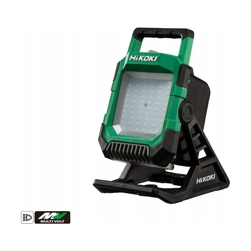 Lampa została wyposażona w obudowę o klasie IP65 ze zwiększoną odpornością na kurz i zachlapania, dzięki czemu sprawdzi się nawet w najtrudniejszych warunkach. Lampa jest kompatybilna z akumulatorami serii HiKOKI Multi Volt oraz 18V. Posiada wbudowaną lampkę kontrolną, która wskazuje pozostałą moc akumulatora oraz gniazdo USB z możliwością ładowania innych urządzeń. Wymiary urządzenia to: długość 186mm x szerokość 155mm x wysokość 276mm, waga 1,9 kg (bez akumulatora)