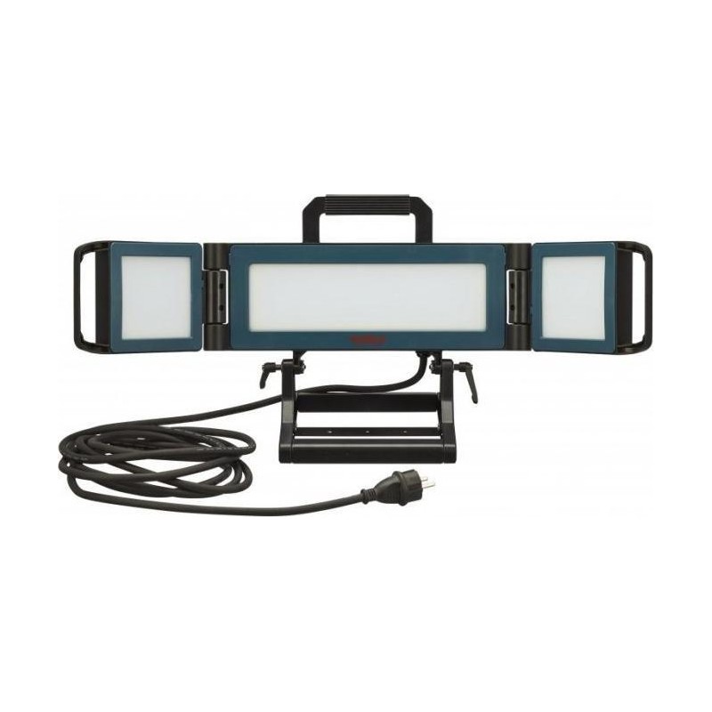 Silna lampa wykorzystująca technologię SMD. Posiada trzy oddzielne źródła światła, które można ustawiać pod różnym kątem względem siebie, aby uzyskać jak najlepszy efekt oświetlenia. Możliwość używania samego głównego panelu środkowego albo samych paneli bocznych. Panele boczne można złożyć, a podstawę przechylić do góry, dzięki czemu lampa staje się mała i poręczna w transporcie. Udaroodporność IK08. Wyposażona z tyłu w dodatkowe gniazdko sieciowe....