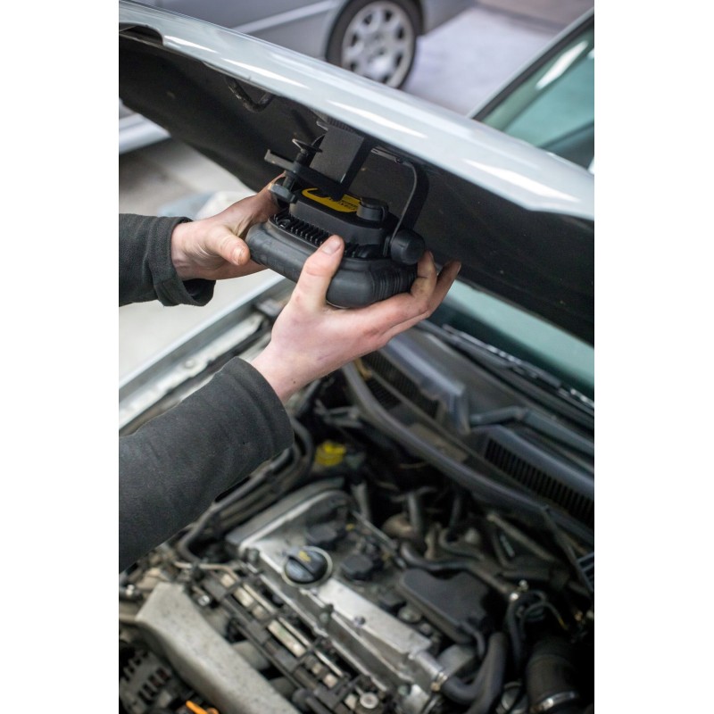 Odporna konstrukcja o klasie ochrony IP67 pozwala na użytkowanie w trudnych warunkach, takich jak prace budowlane czy warsztatowe, ponieważ świetnie radzi sobie z pyłem i wodą.