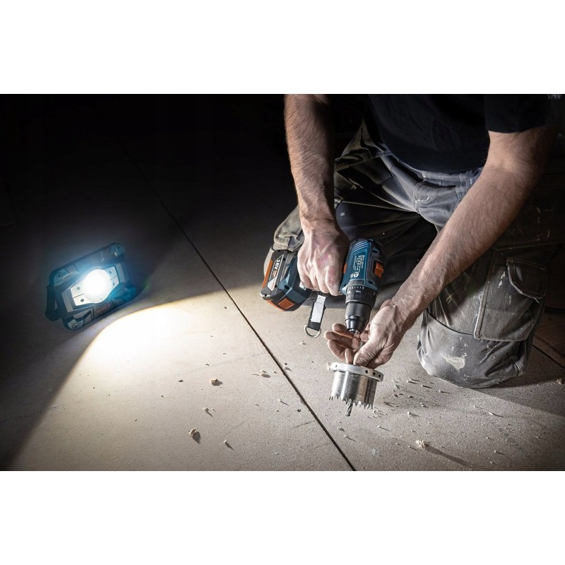 Akumulatorowa lampa robocza ekstremalnie odporna na uderzenia i, jak na swój rozmiar, bardzo silna. Możliwość płynnej regulacji siły światła, jak również w razie potrzeby, regulacji temperatury barwowej od 2700 – 6500 K. Lampę można ładować bezprzewodowo, z wykorzystaniem indukcyjnej płyty ładującej, ale także tradycyjnie poprzez kabel USB C. Ze względu na stopień ochrony IP 65 możliwe jest używanie lampy zarówno na zewnątrz, jak i wewnątrz.
