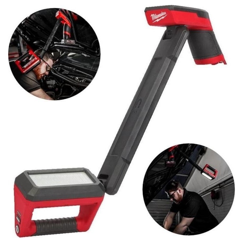 Innowacyjny projekt lampy warsztatowej Milwaukee zawiera podwójne przeguby, które obracają się o 300° w poziomie i 180° w pionie. Dzięki temu użytkownicy mogą łatwo dostosować kąt oświetlenia do swoich potrzeb, co zapewnia pełne oświetlenie obszaru roboczego.